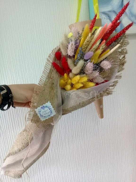 экстравагантный букет с лавандой идеален для подарка любимым, близким и друзьям. подойдет для праздников и в последующем впишется в любой интерьер.