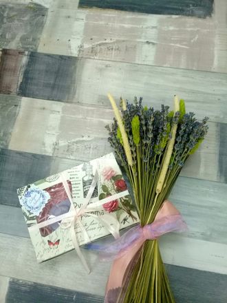 Очаровашка букетик «Девичий голос» 1700 руб. В корзину Лаванда Лагурус Зелень 3 ленты Лаванда Лагурус Зелень 3 ленты Описание Описание Очаровательный букетик доставит радости любой девушке на праздник. Добавить можно любые живые цветы. Доп товары ( мед, масло лаванды, мыло ручной работы,саше)